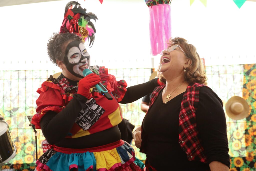 Entre as atrações, o teatro “Mateus e Catirina, uma Prosa com Arte e Sabedoria” encantou o público com humor e interação, fazendo todo mundo entrar no clima da festa. A apresentação arrancou risadas e ainda colocou a plateia pra dançar, com direito a distribuição de brindes.