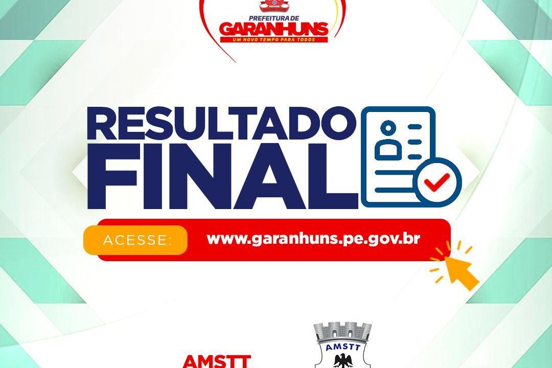 A lista final está disponível no site da Prefeitura de Garanhuns ( https://garanhuns.pe.gov.br/editais/publicacoes/categoria/processos-seletivos/autarquia-municipal-de-seguranca-transito-e-transporte%E2%80%93amstt), e será divulgada, nesta segunda-feira (08), com a relação de aprovados e homologação no Diário Oficial dos Municípios.