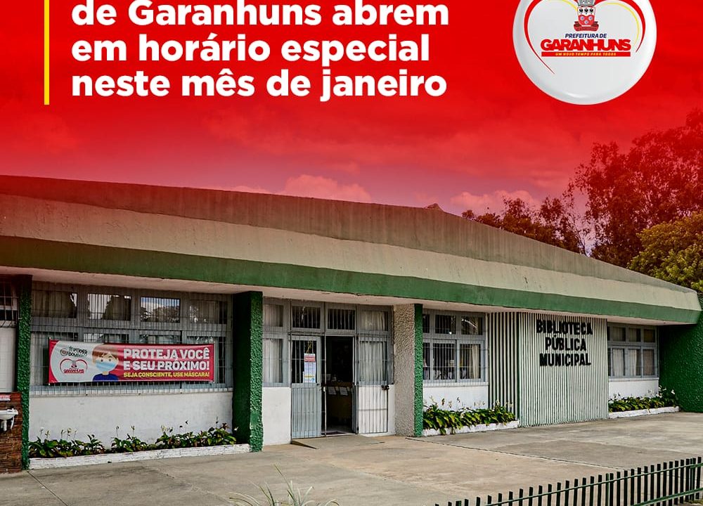 Neste mês de janeiro as Bibliotecas Municipais de Garanhuns estão com horário de funcionamento especial. As três unidades estarão abertas de 8h às 14h para receber o público. Para empréstimo de livro é preciso fazer um cadastro.