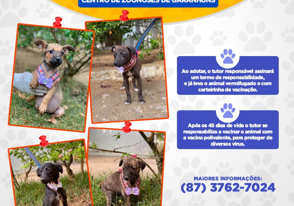 A Secretaria de Saúde de Garanhuns, por meio do Centro de Controle de Zoonoses (CCZ), está promovendo uma campanha de adoção de animais albergados e que foram resgatados nas ruas da cidade. São mais de 180 animais, entre cães e gatos de várias idades. A ação busca estimular a adoção responsável de filhotes ou adultos, que já serão disponibilizados vermifugados e com carteirinha de vacinação.