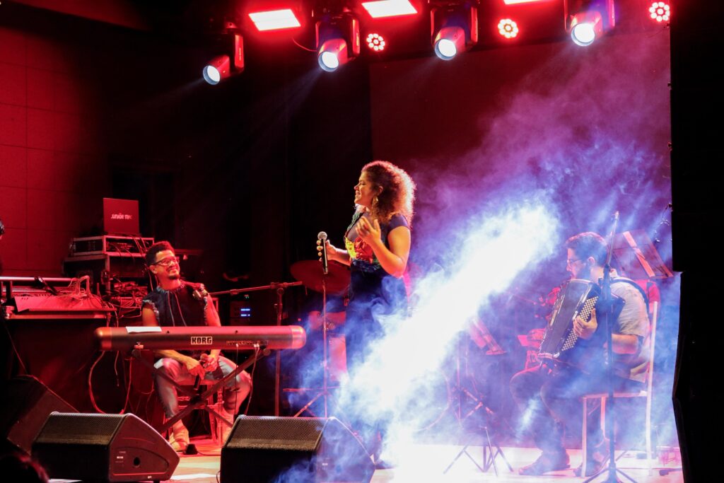 Quem abriu a programação foi o espetáculo Capiba Caymmi, apresentado pelos artistas Isadora Melo e Zé Manoel. Com uma performance envolvente e repleta de ritmos, a dupla levou ao público uma experiência cheia de brasilidade, com interação constante com o público, que cantou junto, se emocionou e se deixou levar pelo show.