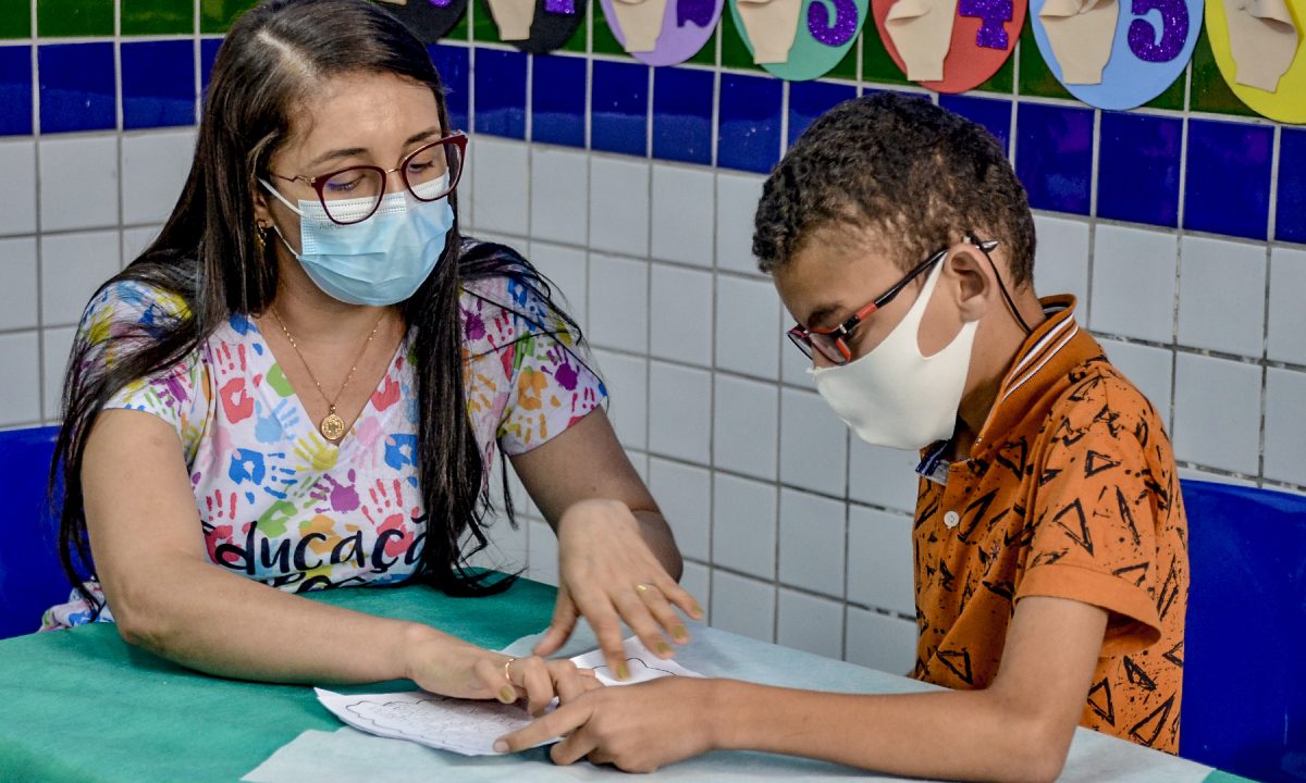 Atendimento Educacional Especializado, Maria José Leandro. “Tem sido muito gratificante. Para a escola é fundamental, só temos ele com baixa visão aqui e é uma forma também de incentivar outros alunos a escrever e ler mais”, afirmou.