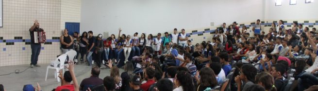 A Secretaria de Turismo e Cultura iniciou hoje (10), as atividades do projeto Desmistificando a Sanfona, que está dentro da programação do Viva Dominguinhos 2019, realizado entre os dias 25 e 27 de abril. A ação busca levar a cultura nordestina e gerar uma aproximação de crianças e adolescentes com a música e, em especial, com o acordeon. A primeira contemplada foi a Escola Municipal Letácio Brito.