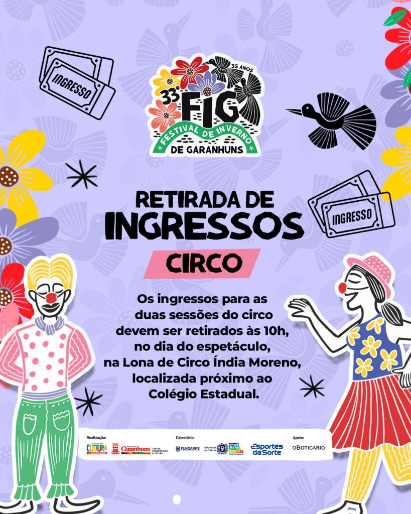 Festival de Inverno de Garanhuns: Confira como funcionará a distribuição de Ingressos para espetáculos de Teatro, Cinema, Circo e para o Palco Estação