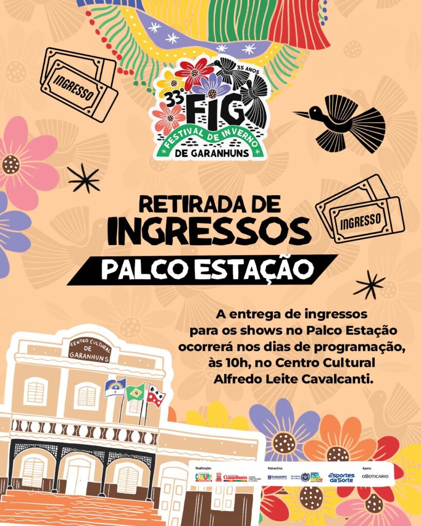A comissão organizadora da 33ª Edição do Festival de Inverno de Garanhuns informa como acontecerá a distribuição de ingressos para as programações de teatro, dança, cinema, circo e para os shows do Palco Estação.