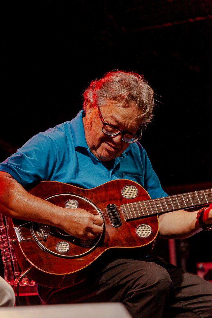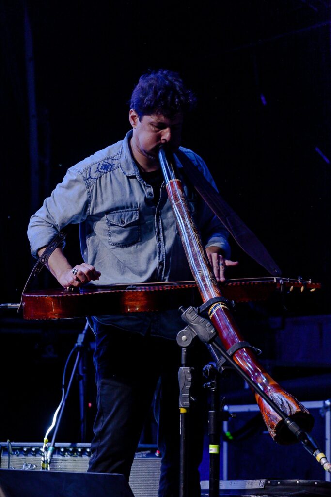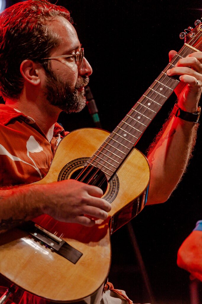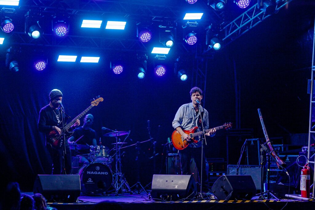 Fechando a noite, o multi-instrumentista Gui Schwab, que já se apresentou no Garanhuns Jazz Festival, trouxe ao FIG uma apresentação marcada pela diversidade de timbres e sonoridades. “A gente mudou um pouco o repertório para poder estar mais alinhado com a proposta do palco. Então tem peças instrumentais, tem instrumento havaiano, australiano, viola caipira tocando blues, tocando música regional”, explicou.