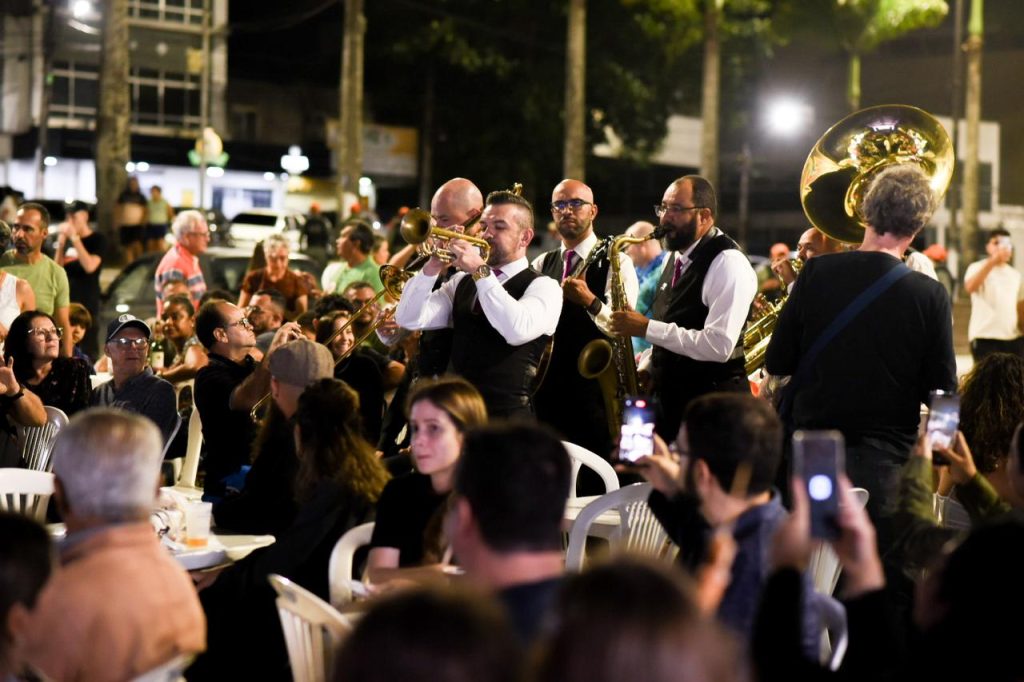 Nos intervalos, a Móbile Jazz Band, de Garanhuns, manteve o clima festivo. Os shows começaram às 19h e seguiram até as 23h, em estrutura coberta preparada para receber o público com conforto.