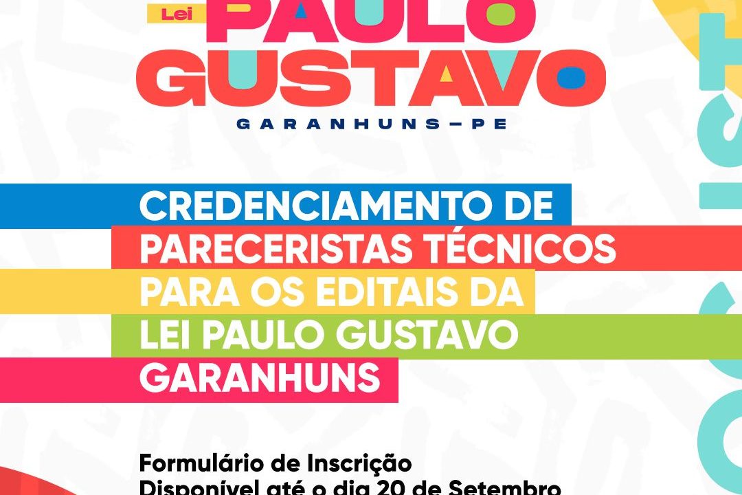 A Secretaria de Cultura de Garanhuns promove a seleção de agentes, pareceristas e estudiosos da cultura interessados em prestar serviço de Parecerista Técnico para os Editais da Lei Paulo Gustavo do município. Para participar, basta responder o formulário do link: https://forms.gle/wpE2SXsp6co8quJaA, até o dia 20 de setembro. Os interessados não precisam necessariamente residir em Garanhuns, pois o trabalho será remoto. Mas, é necessário comprovar experiência de trabalho com cultura e/ou área/segmento artístico que pretende atuar enquanto comissão de seleção.