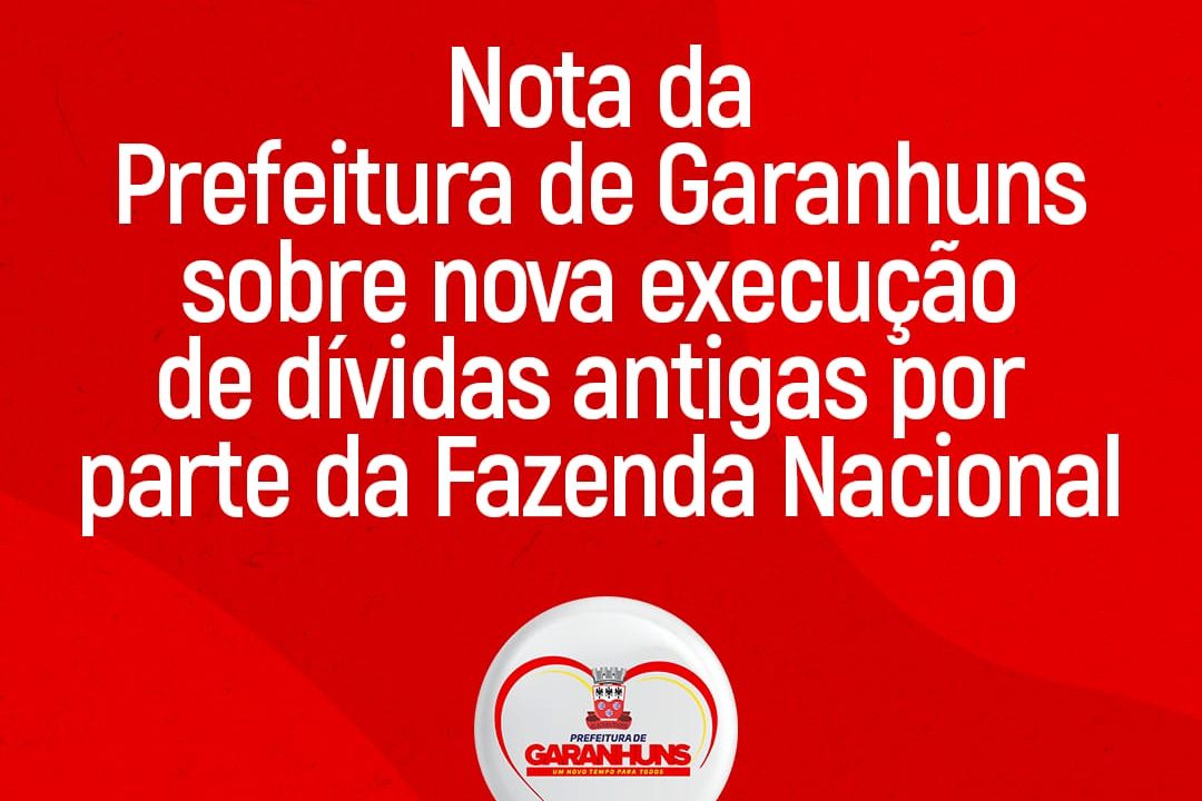 A Prefeitura de Garanhuns, através da Secretaria de Finanças e da Procuradoria Geral do Município, vem a público informar que recebeu nova Execução Fiscal (0800829-48.2021.4.05.8305) por parte da União, representada pela Fazenda Nacional – PGFN, cujo processo se encontra em trâmite na 23a. Vara Federal de Garanhuns, no valor de R$ 15.158.493,89 (quinze milhões, cento e cinquenta e oito mil, quatrocentos e noventa e três reais e oitenta e nove centavos), devido “Ausências de recolhimentos ou recolhimentos a menor de contribuição previdenciária patronal, das contribuições previdenciárias retidas do servidor, além da contribuição para o PASEP. Sonegação fiscal referente ao ano de 2016, gestão do ex-prefeito Izaías Régis Neto.