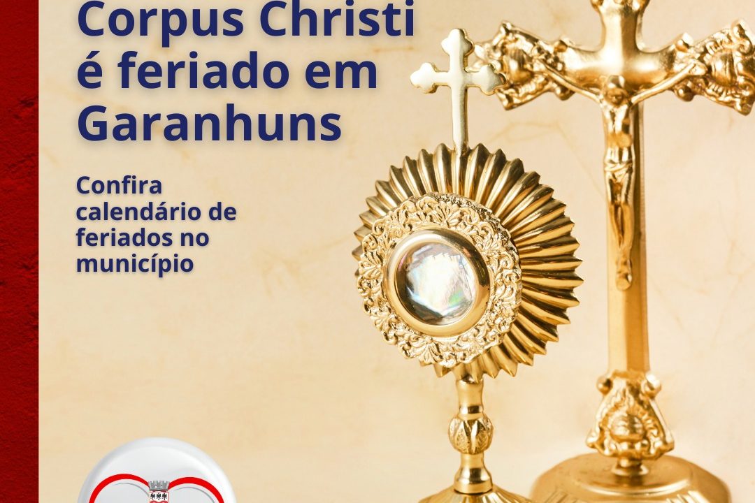 A prefeitura de Garanhuns, através da Secretaria de Administração e da Procuradoria Geral do Município, informa que, conforme Lei Nº 4.752/2021, que revisou a Lei Nº 3946/2013, são considerados feriados municipais as seguintes datas: – Civil: 04 de fevereiro (Elevação de Garanhuns à categoria de Cidade); Religiosos: Sexta-Feira da Paixão (data móvel); Dia de Corpus Christi (data móvel); 13 de junho (Santo Antônio – Padroeiro de Garanhuns); e 24 de junho (São João). Este ano, o Dia de Corpus Christi será em 08 de junho, próxima quinta-feira.