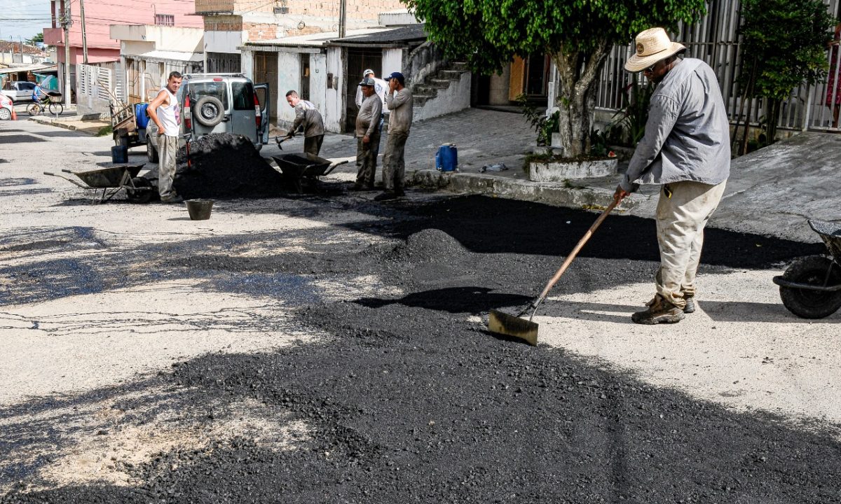 Na comunidade, as equipes da SIOSP estão utilizando CBUQ, um material em concreto betuminoso usinado a quente. No local também foi possível recuperar o pavimento e instalar este novo material.
