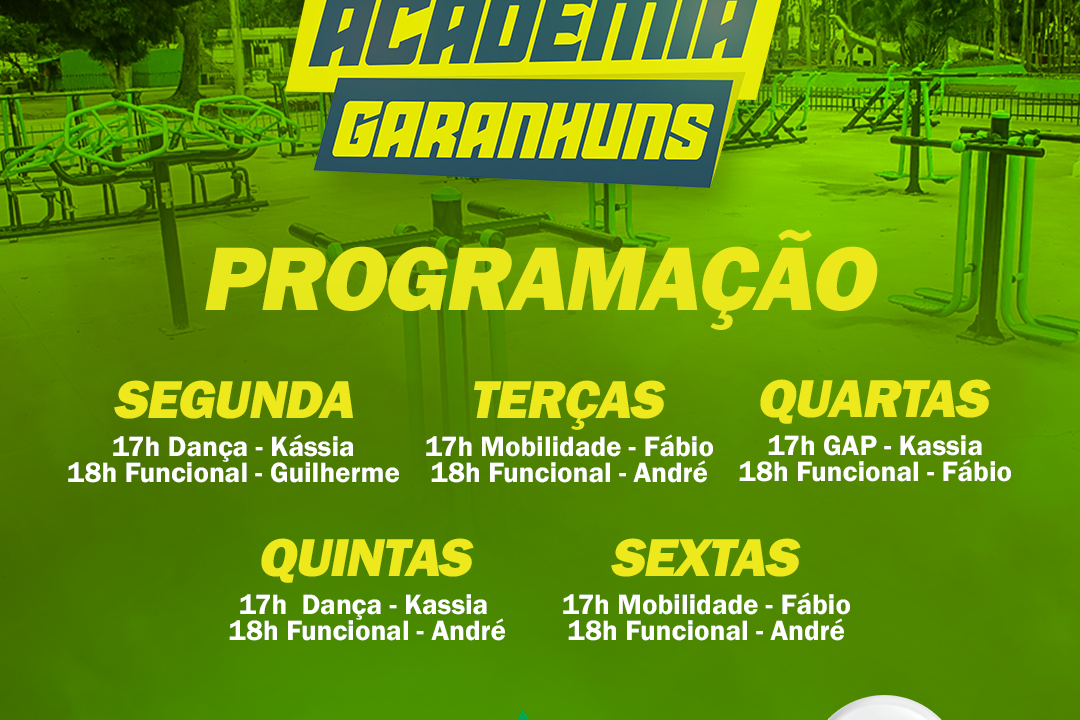 A Secretaria de Juventude, Esportes e Lazer, da Prefeirura de Garanhuns, informa a programação de aulas coletivas no Parque Euclides Dourado. Vale salientar que para frequentar as aulas coletivas não é necessário realizar inscrição ou cadastro prévio. Basta chegar e entrar no clima da alegria, do esporte e da saúde, com a equipe do parque.