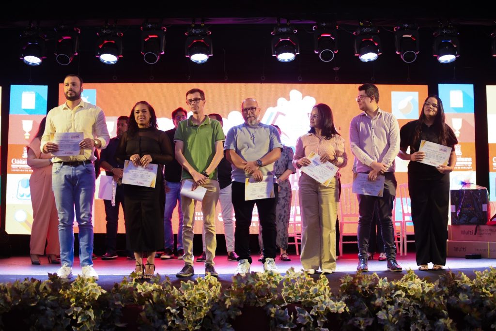 Um dos destaques foi a entrega do Prêmio Escola Aprendente – Professor Inovador, iniciativa da Secretaria de Educação que valoriza práticas pedagógicas inovadoras. Regulamentado pelo Decreto nº 047/2025, o prêmio reconheceu professores, gestores, coordenadores pedagógicos e unidades de ensino que se destacaram pelo compromisso com a aprendizagem e a qualidade do ensino.