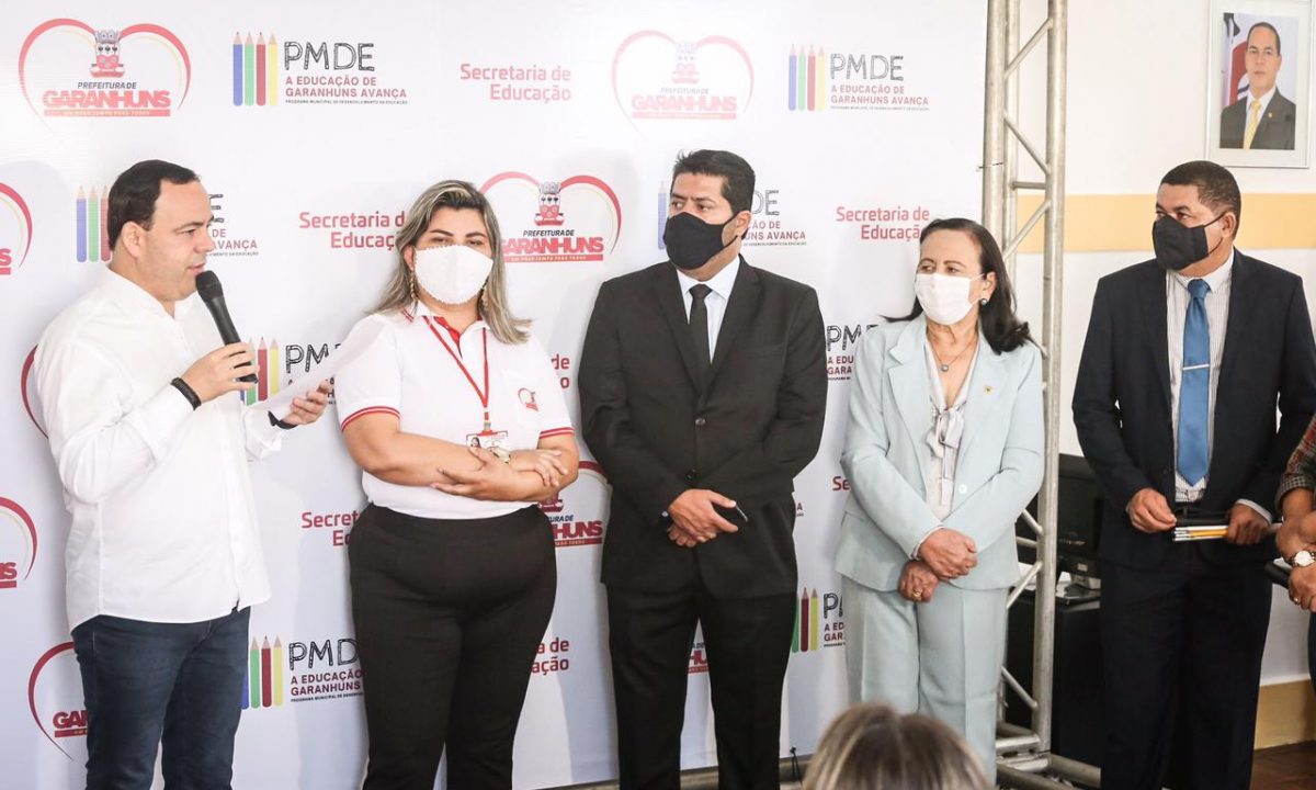 O momento se inicia com a recepção dos professores pelo prefeito Sivaldo Albino, seguido da apresentação do jovem artista Adalberto, poeta e ‘cantador’ de Garanhuns, que se apresentou aos presentes sem cobrar cachê. A solenidade foi transmitida em tempo real para as 59 escolas da rede pública municipal de ensino, para todos os gestores e demais servidores, inclusive com a tradução de intérprete de libras e áudio descrição, em virtude de haver um professor cego no quadro da educação. A professora Jacineide Ferreira, da Escola Ernesto Gueiros, Distrito de Miracica, e o auxiliar de serviços gerais Marcos Felipe, representando todos os gestores e servidores da educação, receberam das mãos de Sivaldo kits pedagógicos e de prevenção à Covid-19.