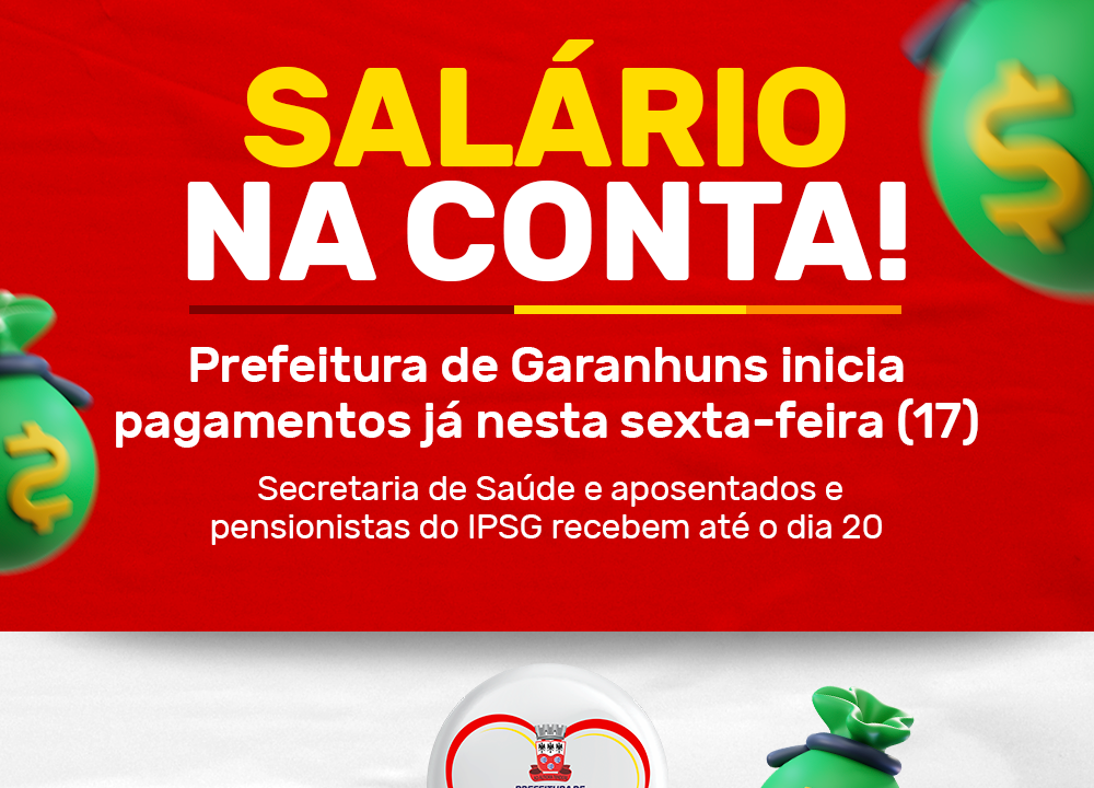 A Prefeitura de Garanhuns informa que os pagamentos de dezembro, que de início seriam depositados no dia 20, receberam uma nova antecipação: alguns setores já começam a receber nesta sexta-feira (17). Servidores efetivos, contratados e comissionados da Prefeitura de Garanhuns, incluindo AMSTT e IPSG, recebem mais cedo este mês. Uma iniciativa do Governo Municipal com o intuito de aquecer a economia do município neste fim de ano.