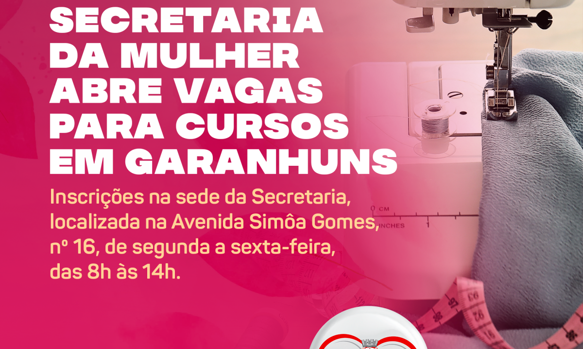 A Secretaria da Mulher de Garanhuns preparou uma programação especial de cursos que serão realizados a partir de março na sede da pasta. Corte e costura, costura customizada, costura artesanal, artesanato geral e defesa pessoal serão algumas das capacitações. São destinadas 15 vagas por curso para as mulheres da cidade e as aulas terão início na primeira semana de março.