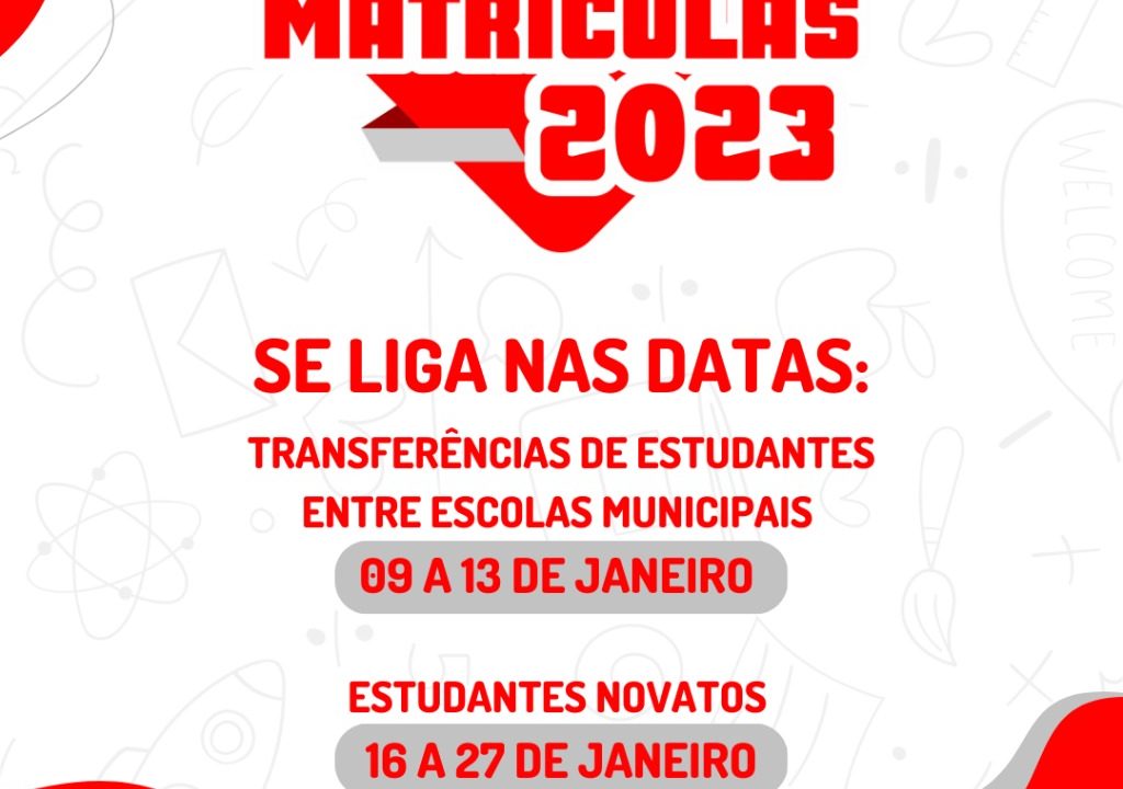 As matrículas de transferência entre escolas municipais serão realizadas entre os dias 09 a 13 de janeiro e são para estudantes que já pertenciam à Rede Municipal de Ensino e agora serão relocados de escola para continuidade dos estudos, como por exemplo, os alunos que concluíram o 5º ano e agora precisam ir para outra escola para iniciar o 6º ano. O início do processo foi feito pelas escolas e na data sinalizada, os pais devem comparecer à nova escola para efetivação da matrícula, apresentando a documentação necessária.