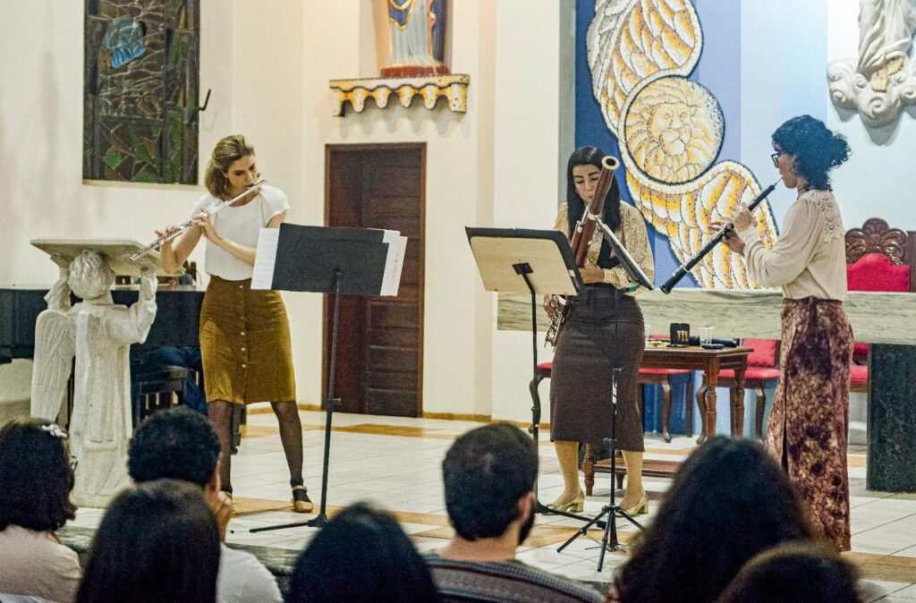 Encerrando o final de semana no Virtuosi, o domingo (20) foi marcado pela apresentação do Trio Capitu, formado por Sofia Ceccato (flauta), Janaína Perotto (clarinete) e Ariana Mendonça (fagote). O grupo, reconhecido por sua abordagem inovadora e interativa, trouxe ao palco um repertório que uniu tradição e contemporaneidade, com peças de Antonio Vivaldi a Chiquinha Gonzaga, promovendo um verdadeiro diálogo entre épocas e estilos.